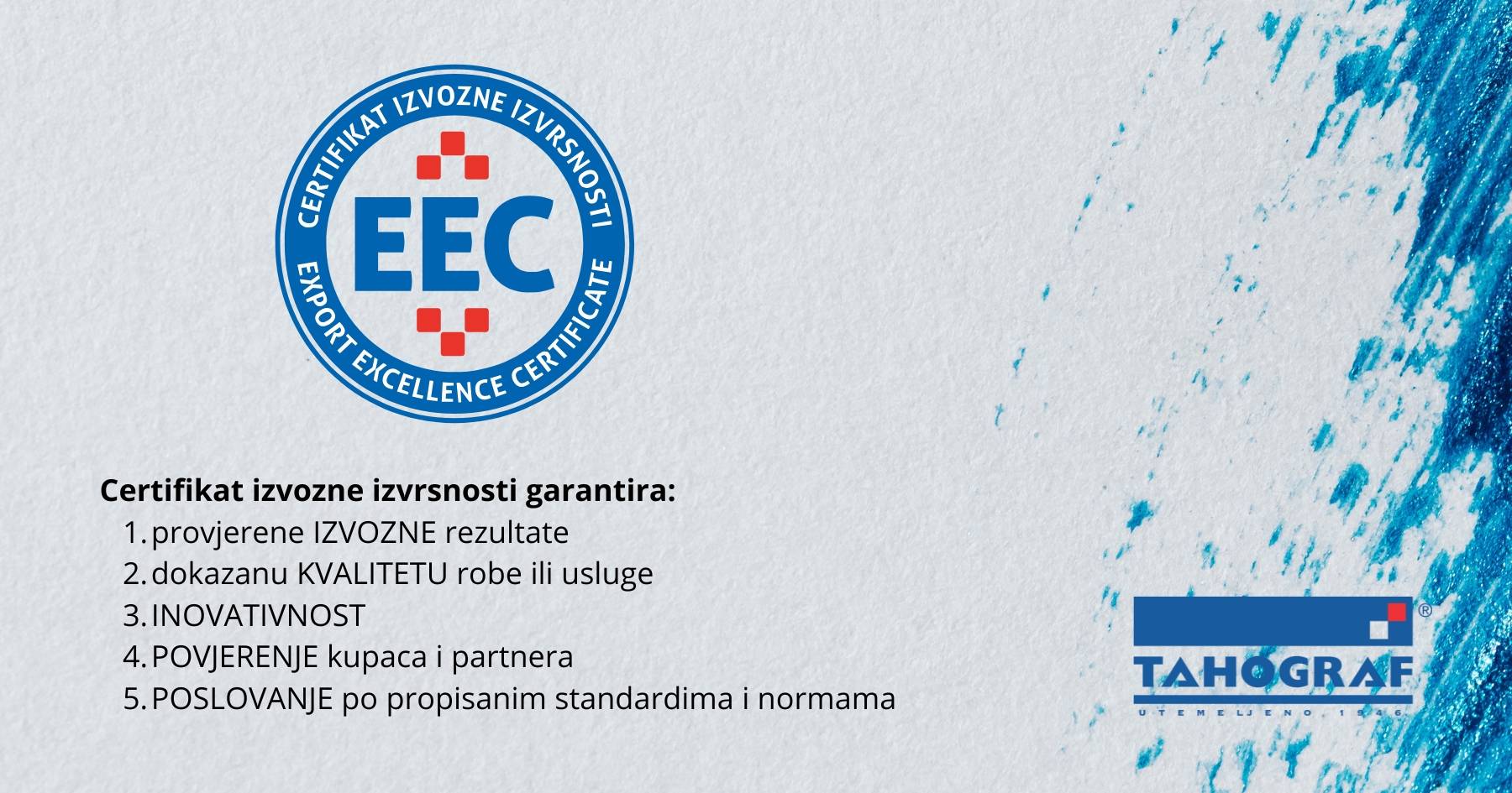 S ponosom objavljujemo da smo nositelj Certifikata izvozne izvrsnosti!